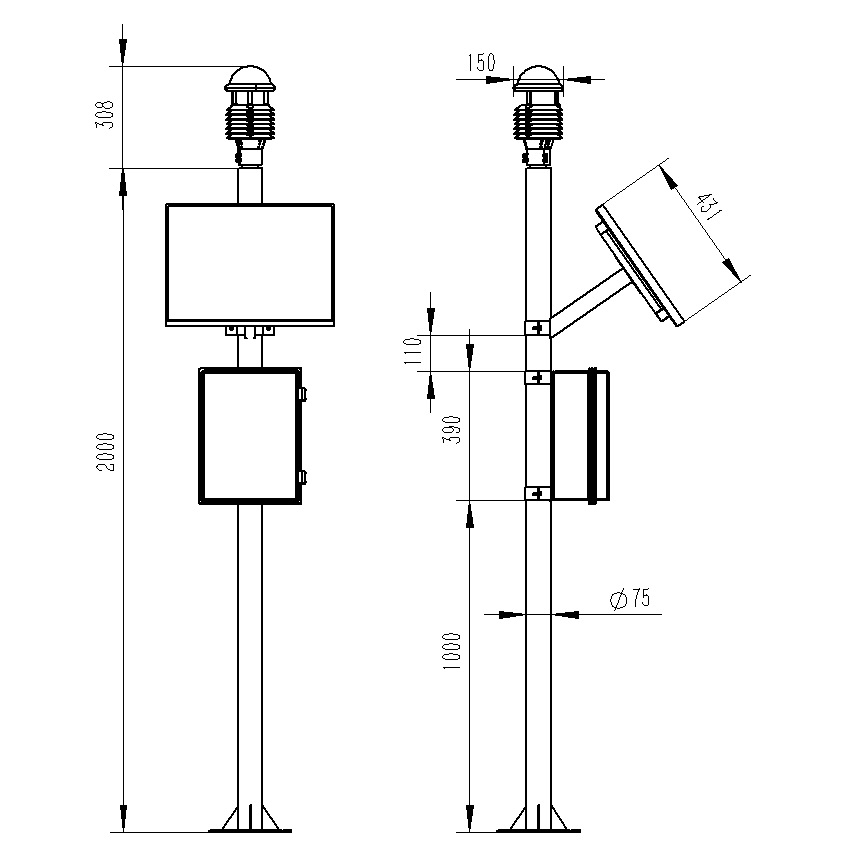 5、兩米碳鋼支架,頂部無需法蘭盤可直接套接傳感器